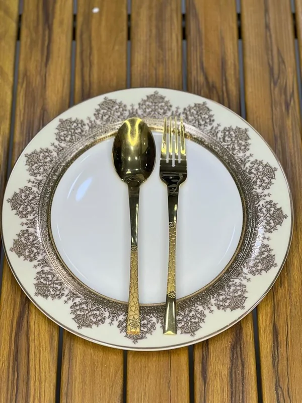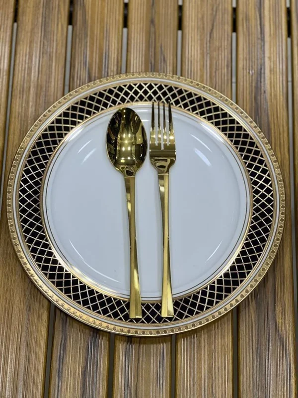 سرویس قاشق در سه طرح مختلف رنگ طلایی باکیفیت عالی و 25سال ضمانت رنگ استیل 18/10 برندالمان